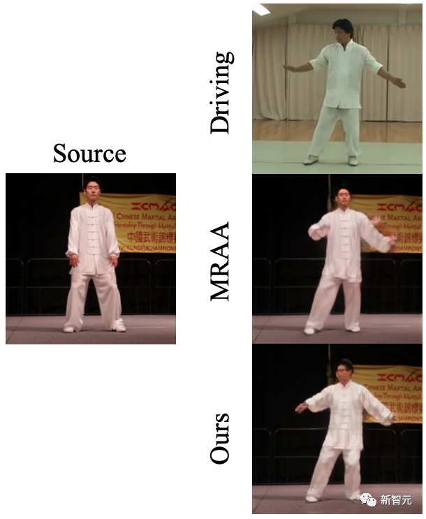如果不能很好的完成源图像与驱动视频之间匹配的关键点,会导致人物手、足与躯干分离等状况出现进而带来不真实感,这是MRAA在太极拳数据集中的「真实感」指标中大幅落后于TPSM的原因。