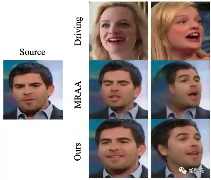 例如下图中MRAA与TPSM在明星访谈特写数据集中的对比可以看出,当源图像和驱动视频中人物面部角度相同时,两个模型的效果是不相上下的。