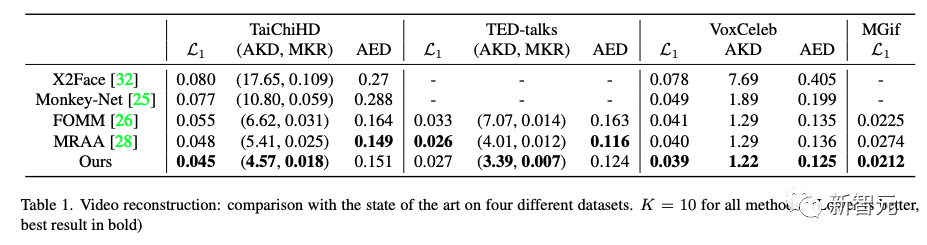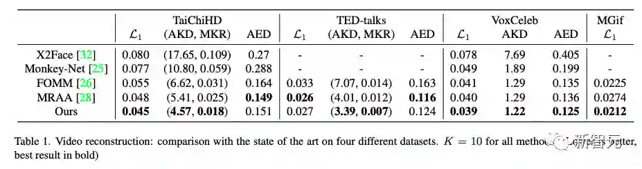 表 1中对比了主流的图像驱动模型之间的客观表现,如果我们盯着L1距离看(表中),TPSM并没有跟MRAA拉开差距,在TED演讲数据集上甚至要比MRAA差。真正拉开差距的指标是人类观察员的主观赞同率。