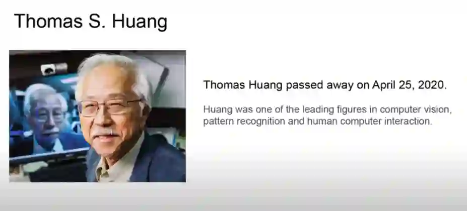 然后,CVPR官方网站播发了时长为1分多钟的视频,纪念Thomas S.Huang,并对其生平功绩做了梳理。