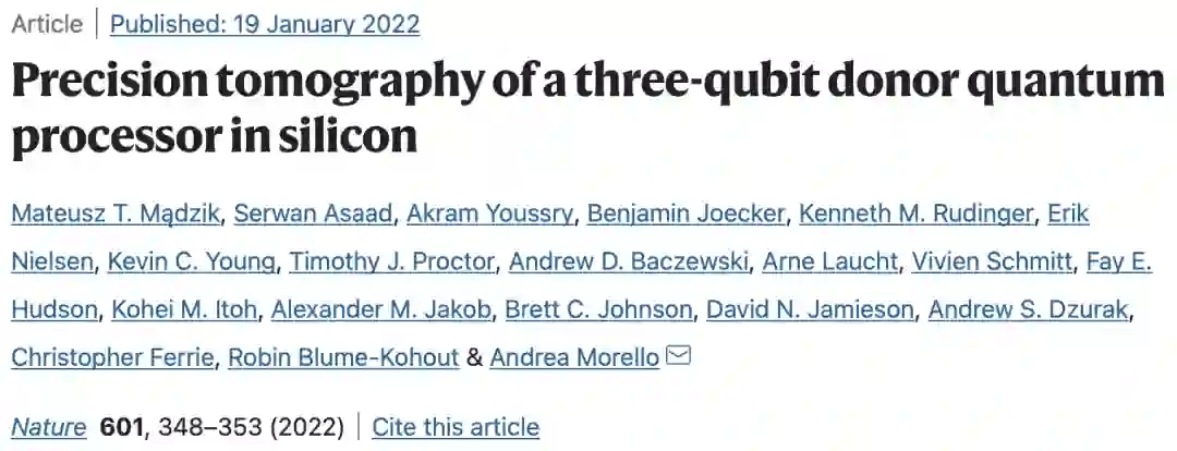 「Precision tomography of a three-qubit donor quantum processor in silicon」,一作Mateusz T. Mądzik,同样来自代尔夫特理工大学。共同一作Serwan Asaad,来自哥本哈根大学尼尔斯·玻尔研究所。