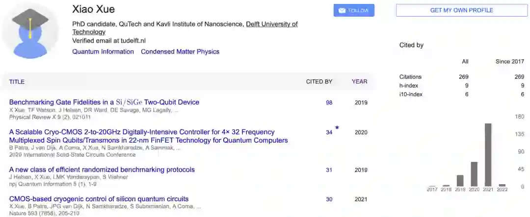 「Quantum logic with spin qubits crossing the surface code threshold」的一作是Xiao Xue,来自代尔夫特理工大学。