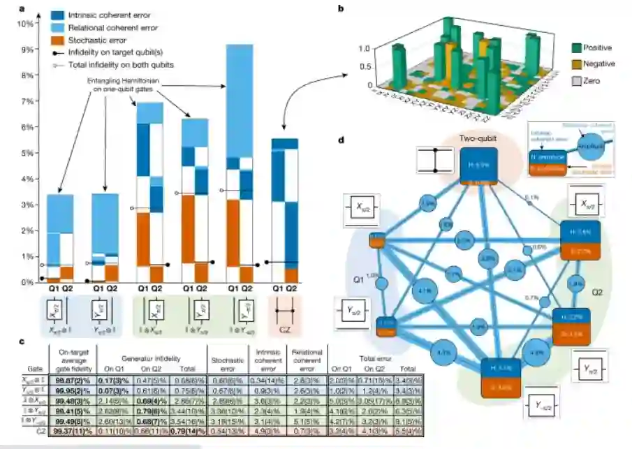 利用量子门集层析成像(GST)对量子操作进行验证后发现,单量子比特的保真度高达99.95%,双量子比特的保真度为99.37%,双量子比特准备/测量保真度为98.95%。