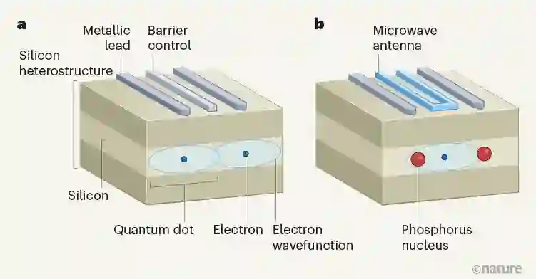 以Mądzik为第一作者的另一个团队,通过利用磷原子的核自旋取得了类似的进展,磷原子取代硅晶格中的硅原子。这一方案的核自旋具有极长的相干时间。