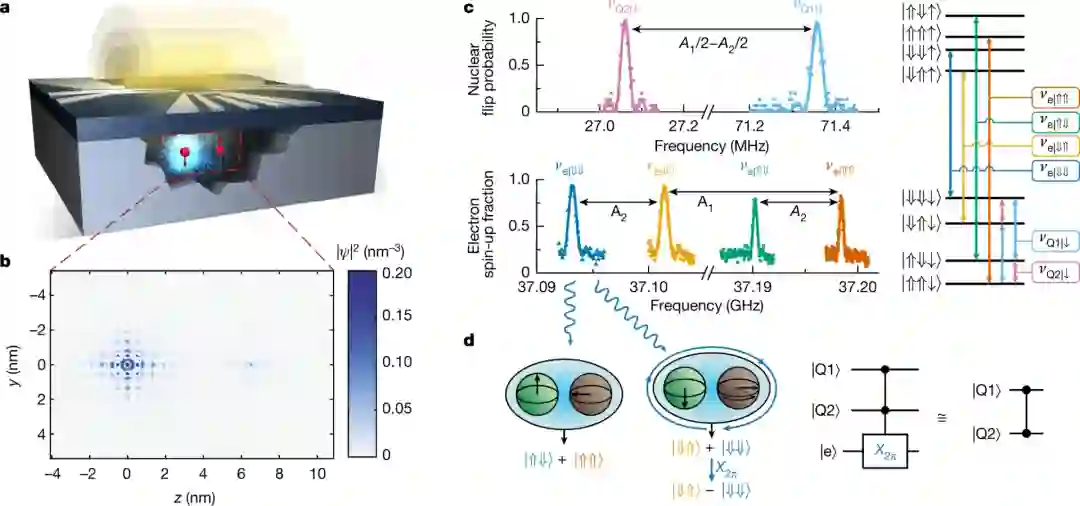 此外,通过产生一个保真度为92.5%的Greenberger-Horne-Zeilinger三量子比特状态,还可证明两个核和共享电子之间的纠缠。