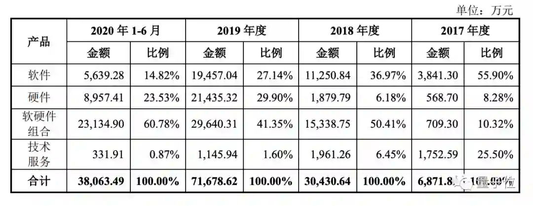 在2017年和2018年,依图硬件、软硬件组合实现的营收占比,从18.60%、56.59%,实现了到2019年和2020上半年的71.25%和 84.31%。