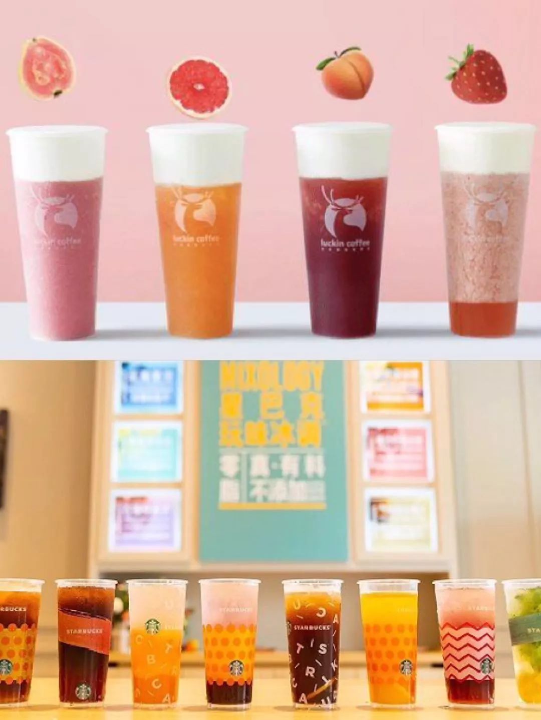 基于瑞幸咖啡在轻食、鲜榨果蔬汁上处处跟随星巴克,有业内人士认为,瑞幸此次的的10款茶饮产品明显对标星巴克的“玩味冰调”。