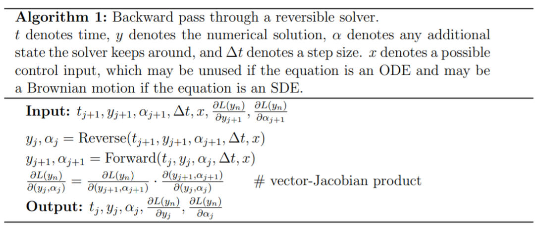 可逆微分方程求解器:如第 3 章所述,CDE 可以简化为 ODE,并且相应地可以应用于任何可逆 ODE 求解器。同时 SDE 有一个已知的可逆求解器,即可逆 Heun 方法。