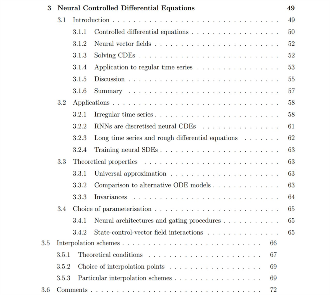 第三章论文从循环神经网络的连续时间限制的角度介绍了神经受控微分方程。这对于研究 RNN 或时间序列的人来说非常有用;也适合路径理论、控制理论或强化学习的研究者阅读。
