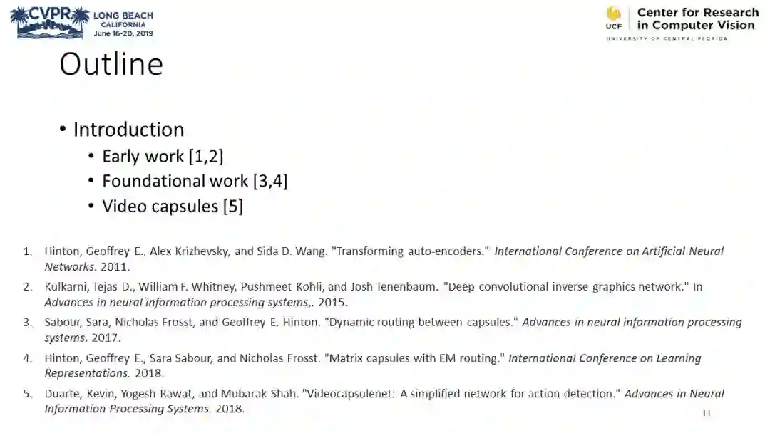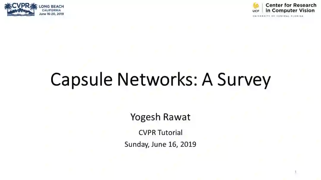 CVPR2019包含了多个与胶囊网络相关的教程,本文介绍其中Yogesh Rawat的一篇综述PPT《Capsule Networks: A Survey》,其内容大致如下: