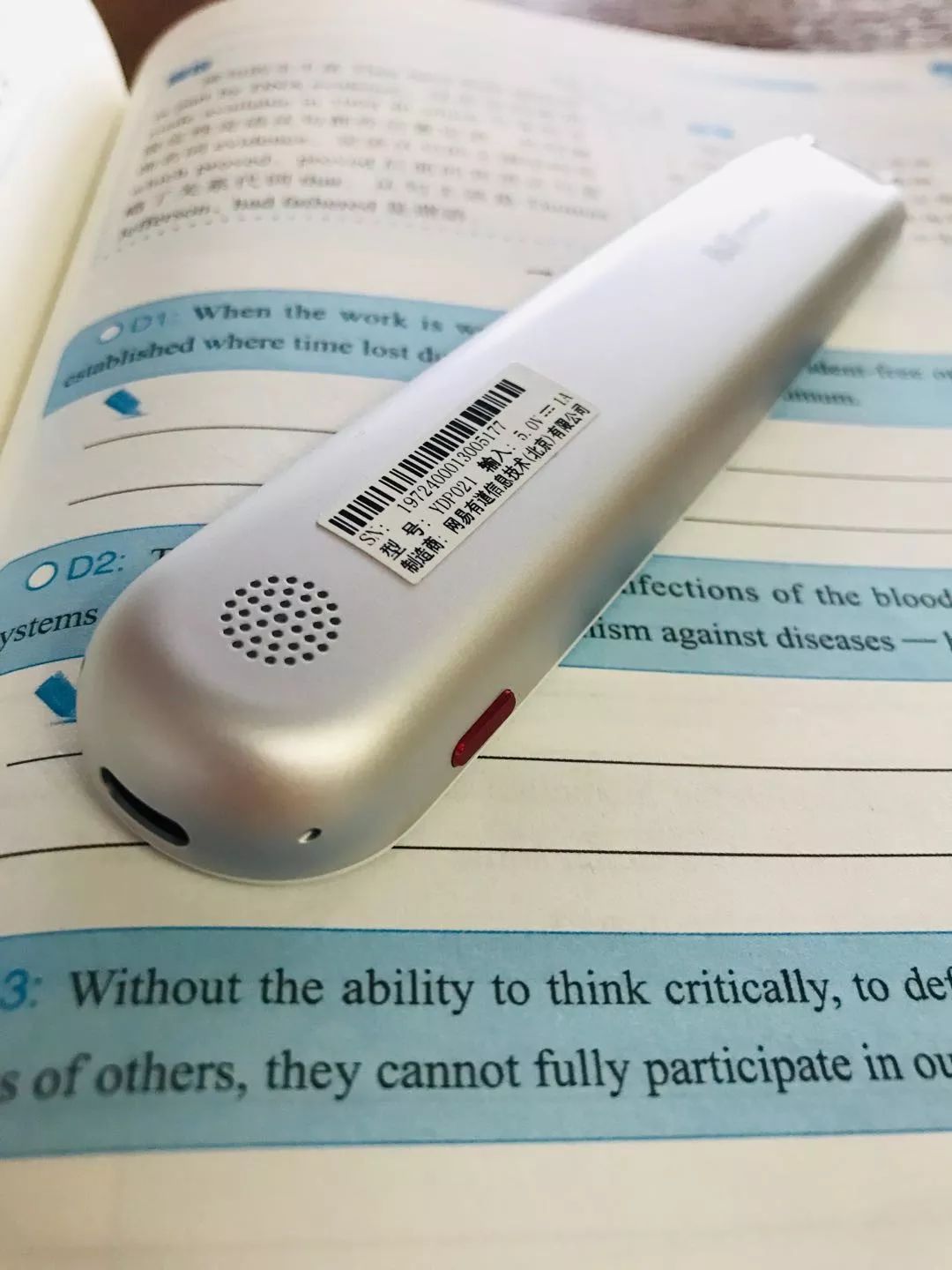 网易有道词典笔 2.0 在使用的时候也比较方便快捷,双手就像是拿住笔的下半部分,然后进行轻轻的进行压力扫描就可以扫描出想要的结果,因为它在笔头的下方有一个工程塑料材质的按压模组以及两个补光灯和一个扫描摄像头,虽然我上述的材料比较的多,但是整体识别排列的比较有规律,整体组合并没有一点突兀,可见网易大厂的工业制造水平。