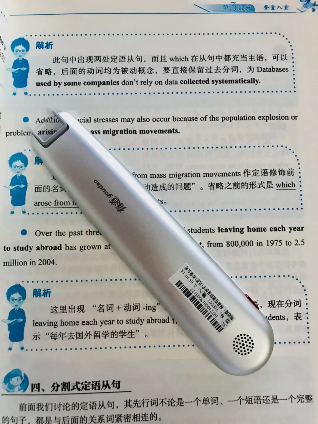 在长难句中,网易有道词典笔可能就显的并没有那么多从容了,是因为无法全段扫描的原因,使我在日常使用中只能断句进行扫描,就可能在后期联系在一起时,翻译的结果会有一些突兀和不协调,间接的就增加了我的后期学习成本。但是据官方消息透露,在 9 月初期,系统就会更新整段扫描,到那个时候,我想它的易用性就会大大的增加。
