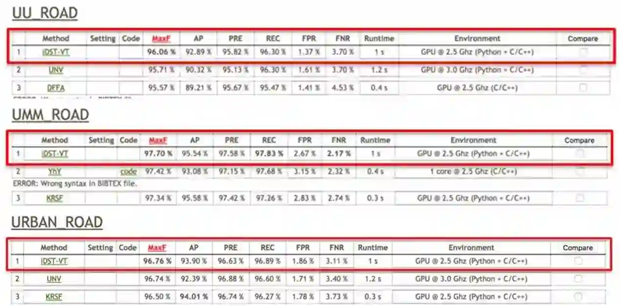 在国际最大的自动驾驶计算机视觉算法集KITTI中,阿里一举囊括三项道路场景分割任务第一,包括UMM_ROAD(多车道)与UU_ROAD(乡村车道)两项特定场景评测任务,及整体场景的综合评测任务URBAN_ROAD。