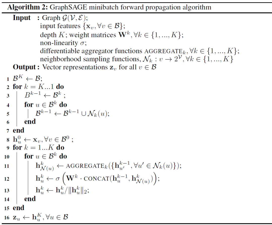 上述,算法的基本思路是先 将小批量集合B内的中心节点聚合操作要涉及到的k阶子图一次性全部遍历出来,然后在这些节点上进行 K 次聚合操作的迭代计算。