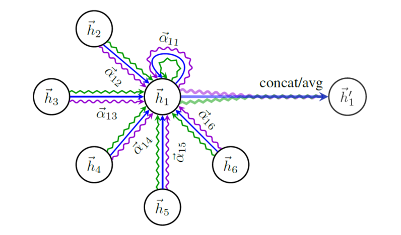 多头注意力机制的引入,同样与transformer相似,用Muti-Head Attention来模拟CNN多输出通道的效果。以求学习到更多层次的表达。GAT原文中,除最后一层muti-head attention取avg外,其余均concat.