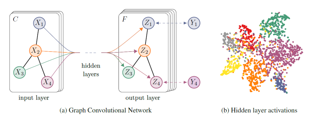 在CNN的启发下,图卷积网络(GCN)被提出来,将卷积操作从网格数据推广到图数据,并导致图领域的突破。作为基本的GNN,GCN在基于频谱(从图信号处理的角度)和基于空间(从信息传播的角度)的卷积GNN之间架起了桥梁。