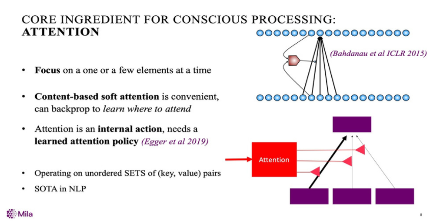 所以「系统2」在做任务执行的时候可能非常慢,但里面的涉及的关键确是我们想给深度学习进一步扩展的功能。
