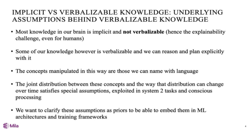 将意识加工到深度学习需要先验知识。那么什么样的先验知识能够帮助扩展深度学习,并使其融入高级概念和「系统2」任务存在的那种结构?