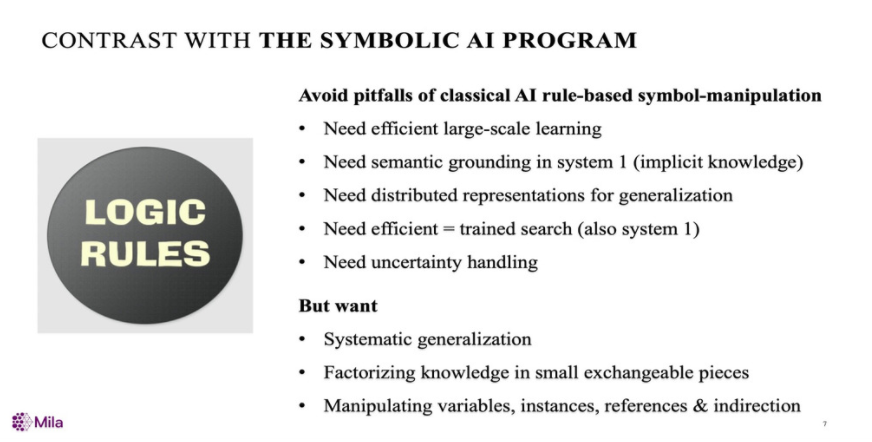 这就需要把通过深度学习取得的一些成果保留,如高效-大规模学习,语义基础、以及「系统1」中的知识表达、以及机器学习正确处理不确定性的能力。