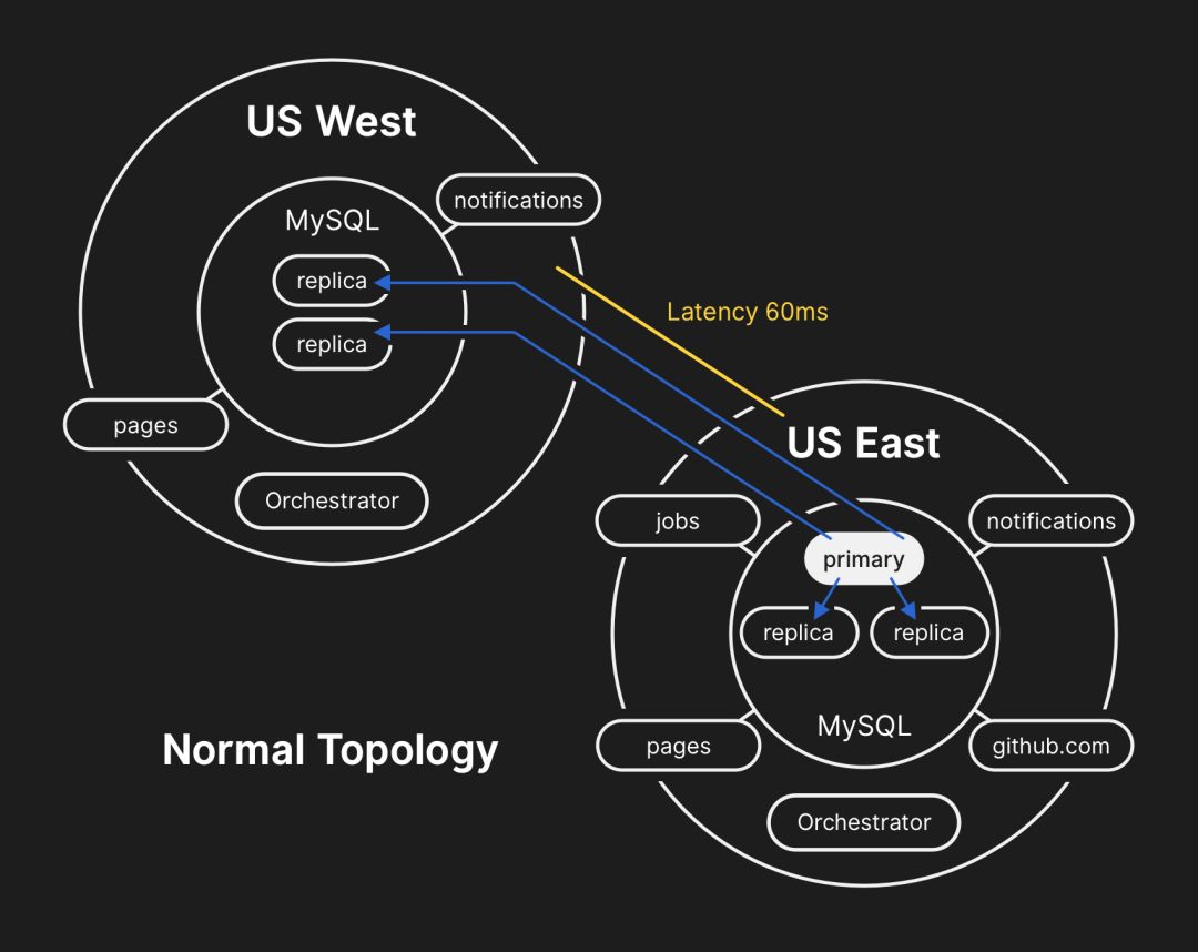 在UTC时间(世界标准时间)10月21日22:52,在日常维护工作中更换发生故障的100G光纤设备时,引发了美国东海岸的网络中心与美国东海岸主要的数据中心之间的连接中断。这两个地方之间的连接在43秒后得到了恢复,但是这次短暂的中断引发了一系列事件,导致了24小时11分钟的服务降级。