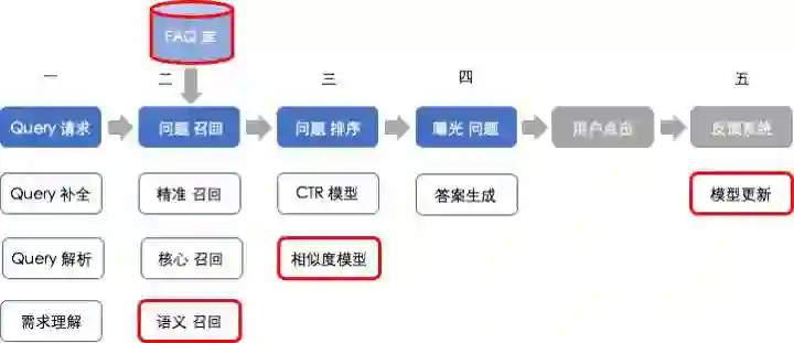 在智能客服的框架中,最重要的模块是 FAQ 库的构建、语义召回、相似度模型和模型更新,它们性能的好坏对用户的使用体验有很大影响。