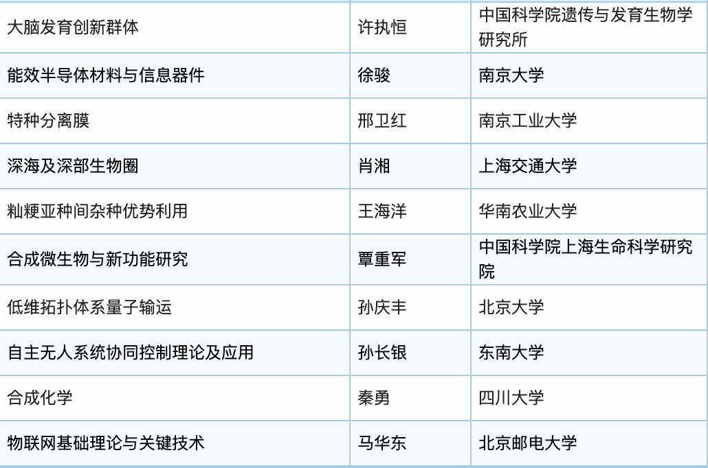 国家自然科学基金委也公布了创新研究群体项目资助名单,今年共有34家单位获得45项创新研究群体项目,其中北京大学获得4项,居各单位之首,清华大学和南京大学获得3项,并列第二位,上海交通大学、天津大学、中科院生物物理研究所、中科院遗传与发育生物研究所各获得2项。