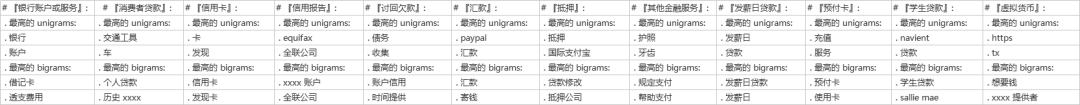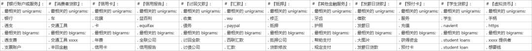 我们可以使用 sklearn.feature_selection.chi2 来查找与每个产品最相关的项: