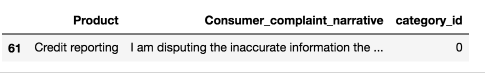display(df.loc[indices_test[(y_test == actual) & (y_pred == predicted)]][['Product', 'Consumer_complaint_narrative']])
