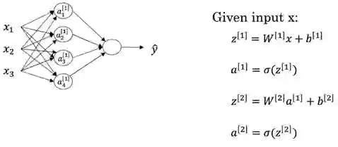 前向传播是一个复合函数的过程,每一个神经元都是一个线性函数加一个非线性函数的复合,整个网络的结构如下:其中上标表示网络层,所以 表示输出层。