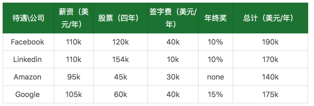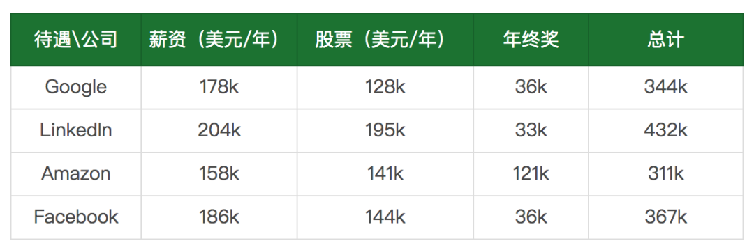 在工科毕业生的offer里,大部分起薪比较低,不超过8w。而FLAG是第一批年薪超过10w的公司,于是久而久之四大家逐渐成为大家的求职目标。到了12、13年LinkedIn家的包裹之大,甚至到了位于同行顶尖的地步。有用户甚至用了“一骑绝尘”来形容此时LinkedIn的包裹。