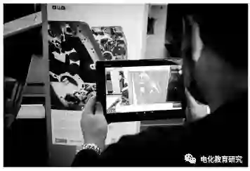 增强现实技术的特点是虚拟和真实物体在同一时间上实现交互,SVL学习系统可帮助学生了解印刷机的复杂功能和工艺过程,其基本构成是一系列演示图片,包括文本、图形、3D模型和2D插图,每个图片都有相应的标题和解释性内容。利用平板电脑的增重模式,摄像头捕捉到的真实设备可与3D图像叠加;学生通过虚拟窗口可以看到机器内部情况,理解复杂的工艺过程(如图1所示)。学习内容还包括动画、相关数字化资源和补充性注解。