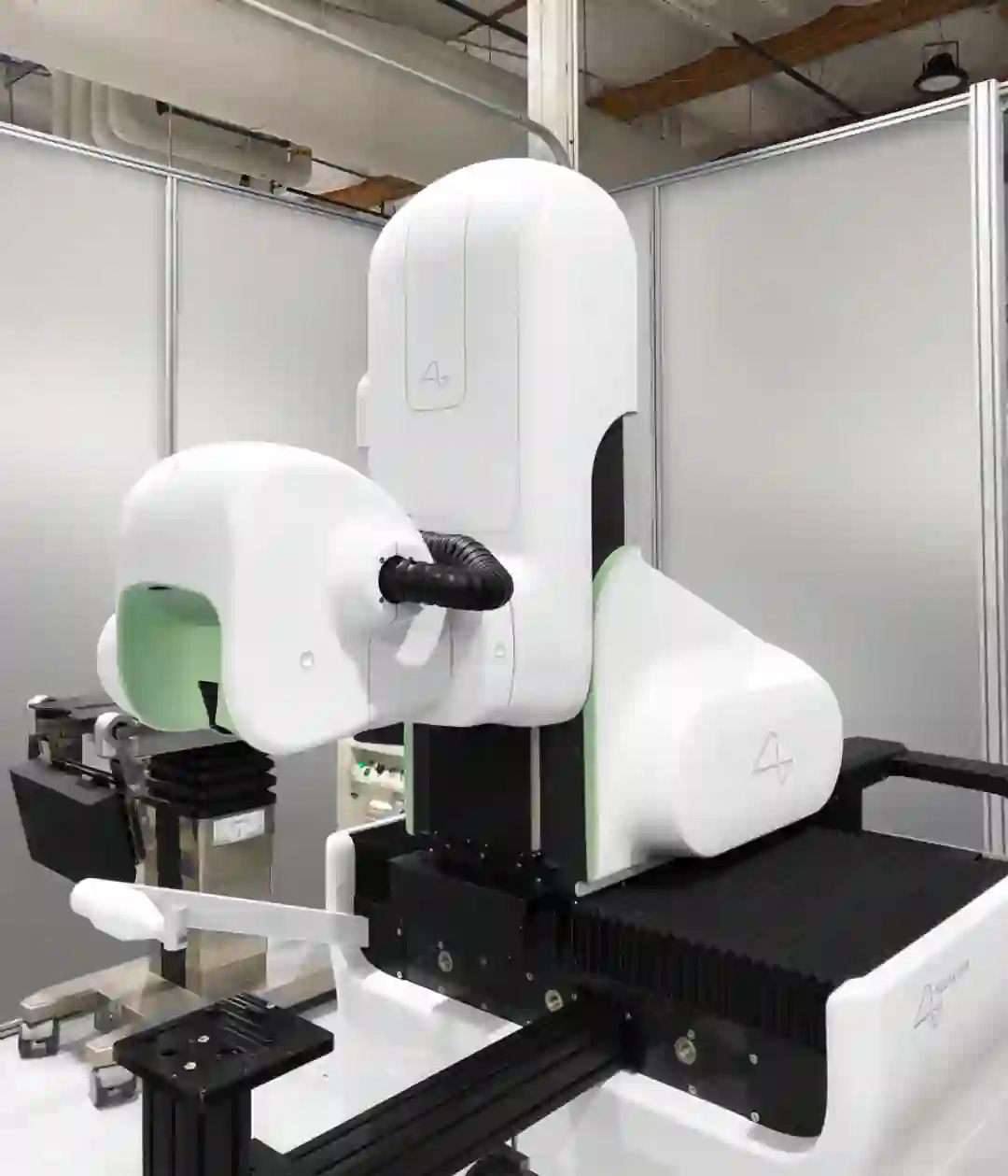 Neuralink 手术机器人由三个部分组成:头部、身体和底部。机器人的头部是头盔的形状,能够包裹住患者的头部进行操作,还能指导手术针。此外,头部还包括用于绘制患者大脑图像的嵌入式相机和传感器。这款手术机器人的设计旨在使其具有拟人化的特征,使这种侵入性手术看起来没那么可怕。头盔内部还衬有一次性袋子,用于无菌操作。
