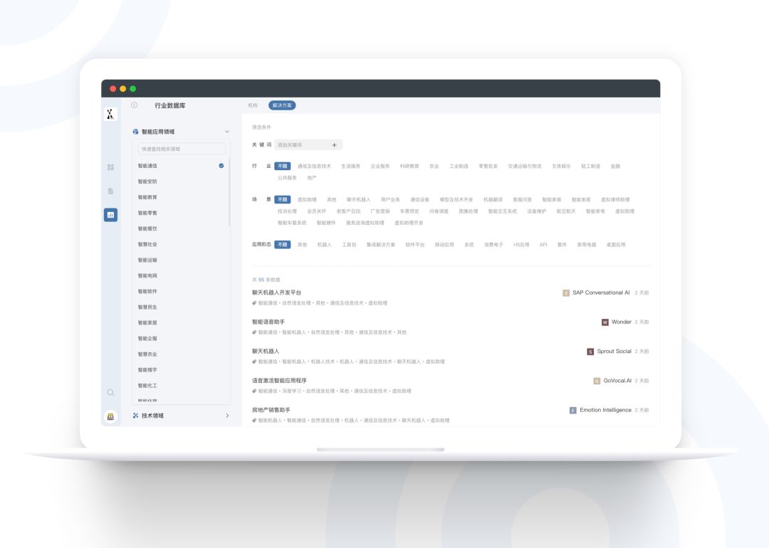 在行业数据库中,1.0 beta 版本共收录全球 3000+ 机构数据和 3000+ 解决方案及落地案例,帮助读者成体系梳理产业链,快速查找市场数据,高效进行行业调研。