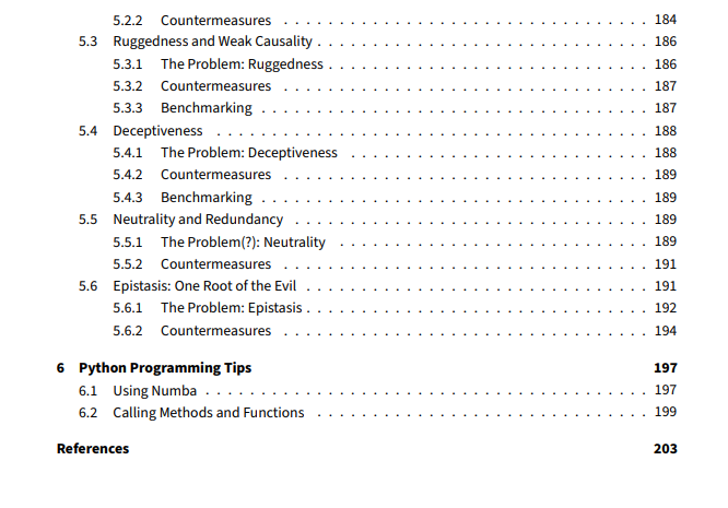 我们使用了用Python编写的具体示例和算法实现。它们可以在2007年6月29日GNU通用公共许可证版本3下的库thomasWeise/moptipy中免费获得。每个源代码列表在标题中都附有一个(src)链接,链接到存储库中文件的完整版本。清单通常是删节的节选。这意味着我们将忽略很多对理解算法不必要的细节,比如类型提示、健全检查,甚至是完整的方法。这些代码将会以完整的代码版本出现在GitHub存储库中。因此,这个完整的代码版本可能与书中插图的删节代码看起来不同。为了完全理解代码示例,我们建议读者熟悉Python、numpy和matplotlib。当然,如果您读这本书只是为了学习算法,您可以忽略源代码示例。