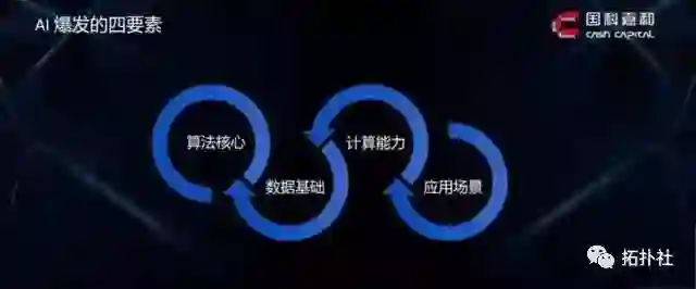 AI在这两年成了新网红。其实道理也很简单,就是四个要素:第一个算法核心,第二个数据基础,第三个计算能力,第四个应用场景。