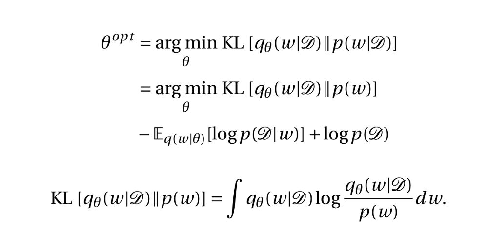 通常,对神经网络权重的精确贝叶斯推断是难以处理的,因为参数的数量非常大,并且神经网络的函数形式不适合精确积分。 相反,我们采用变分近似而不是蒙特卡罗方法来找到似然贝叶斯后验分布。