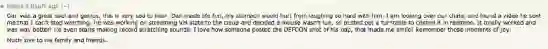「丹是一个伟大的灵魂和天才,听到这个消息,我很难过。丹让生活充满乐趣,我正在翻看我们的聊天记录,发现了他发给我的一段视频,我忍不住要看。他正在研究将虚拟机的状态流传到云端,并认为鼠标不好玩,所以拿出一个转盘来实时控制它。它完全起作用了,而且好得多!他甚至开始发出刮唱片的声音。他甚至开始发出刮唱片的声音。我喜欢有人贴出他午睡时的DEFCON照片,这让我笑了起来!我觉得这是很好的。记住那些快乐的时刻。