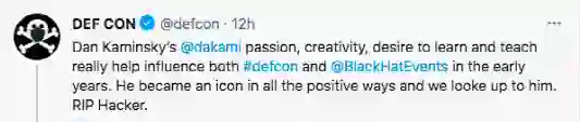 周六上午,安全研究员马克·罗杰斯(Marc Rogers)在推特上发布了他去世的消息。「我想现在已经无法掩饰了。昨天,我们失去了丹·卡明斯基。他是信息安全领域最耀眼的明星之一,也可能是我认识的最善良的灵魂。」