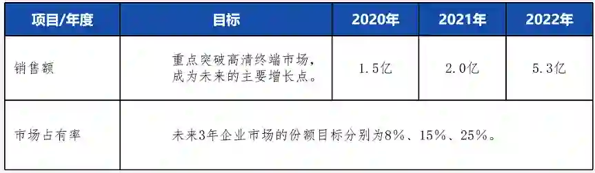 到 2022 年,在战略重点市场的产品的竞争力达到国内领先水平,行业内的销售额做到第一,成为国内企业第一品牌。