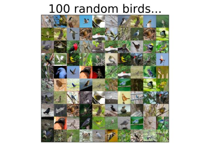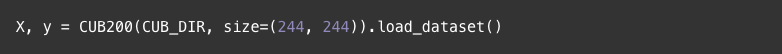 让我们从加载数据集开始,用一个效用函数(here)来加载具有指定大小的图像的数据集。当解压数据集时创建了“CUB_200_2011”文件夹,常量CUB_DIR指向该文件夹中的“image”目录。