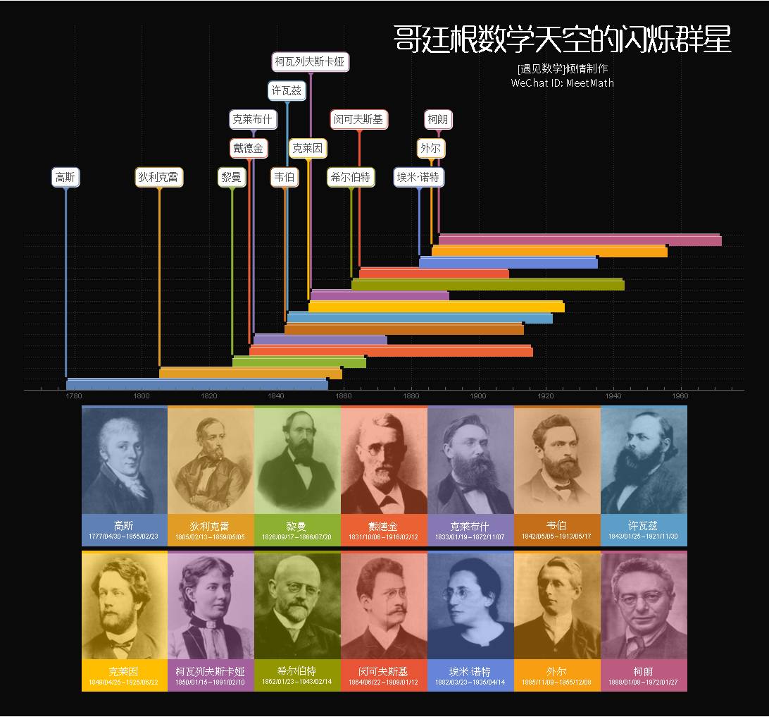 注:文末有[遇见数学] 设计《哥廷根数学天空的闪烁群星》海报图片