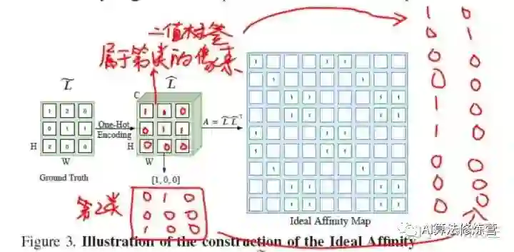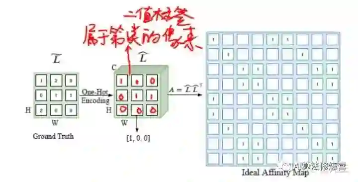 语义分割网络很难从孤立的像素中建模上下文信息。为了让网络建模类别之间的关系,引入了亲和度损失。对于图像中的每个像素,此损失让网络考虑相同类别的像素(上下文内)和不同类别之间的像素(上下文间)。然而,要想用亲和力损失对网络的学习进行监督,就要得到预测图和真值。那么Affinity Loss的真值是怎么产生的呢?