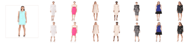 输入一个模特换pose的视频,再配上多张静态服饰照片,就能批量输出动态展示服装的视频了。