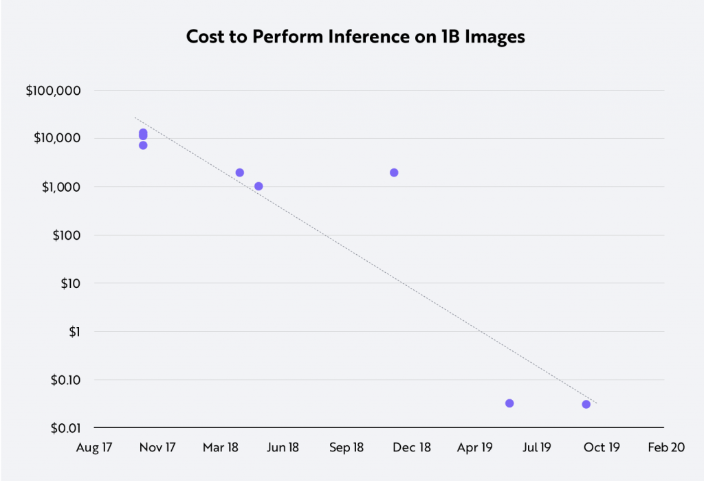 比如,在过去两年中,对十亿张图像进行分类的成本从10,000美元降至仅0.03美元。