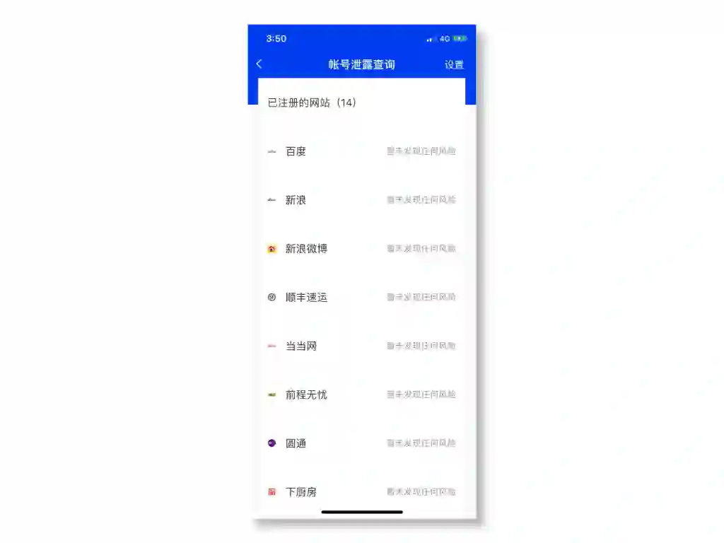 腾讯手机管家的优点在于使用门槛低,不需要邀请码也不需要付费,功能路径是:应用安全 - 账号泄漏查询。