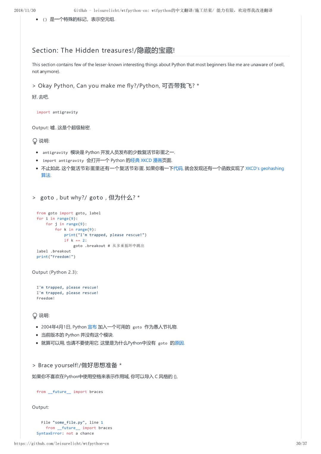 这个有趣的项目意在收集Python中那些难以理解和反人类直觉的例子以及鲜为人知的功能特性,并尝试讨论这些现象背后真正的原理!