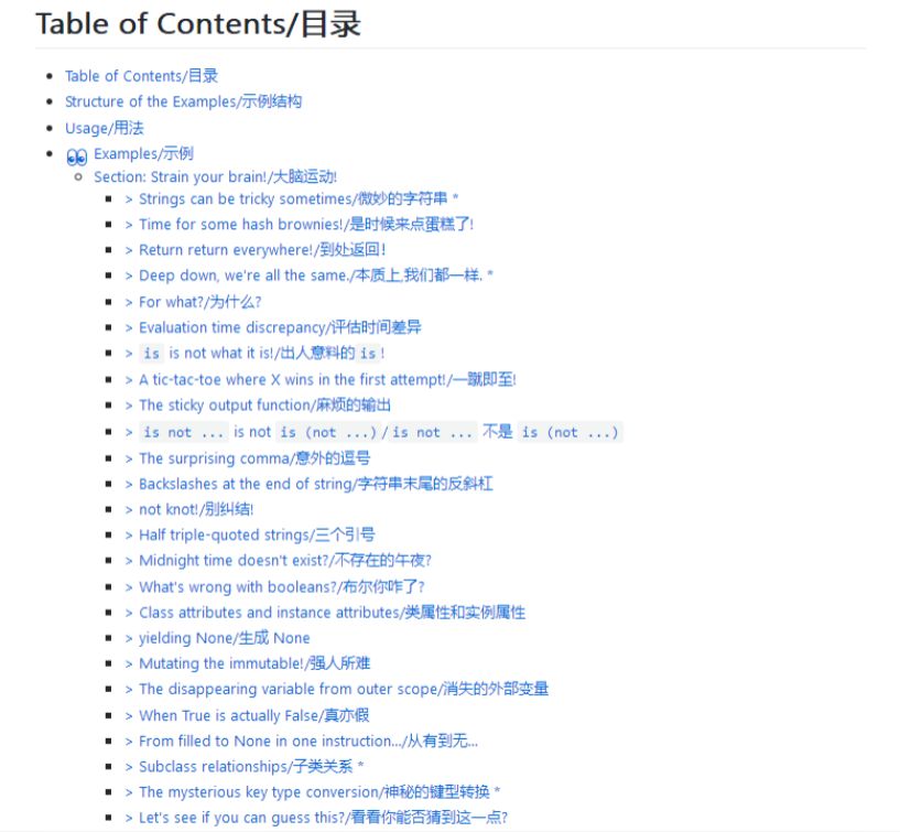 如果你是一位经验比较丰富的Python程序员,你可以尝试挑战看是否能一次就找到例子的正确答案。你可能对其中的一些例子已经比较熟悉了,那这也许能唤起你当年踩这些坑时的甜蜜回忆