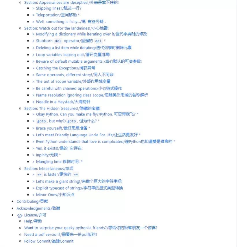 PS: 你也可以在命令行阅读 WTFpython. 我们有 pypi 包 和 npm 包(支持代码高亮).(译: 这两个都是英文版的)