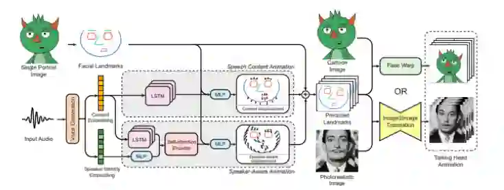 本质上, MakeItTalk将输入音频信号中的内容和说话人分离出来,从产生的抽象表示中提取出对应的动画。