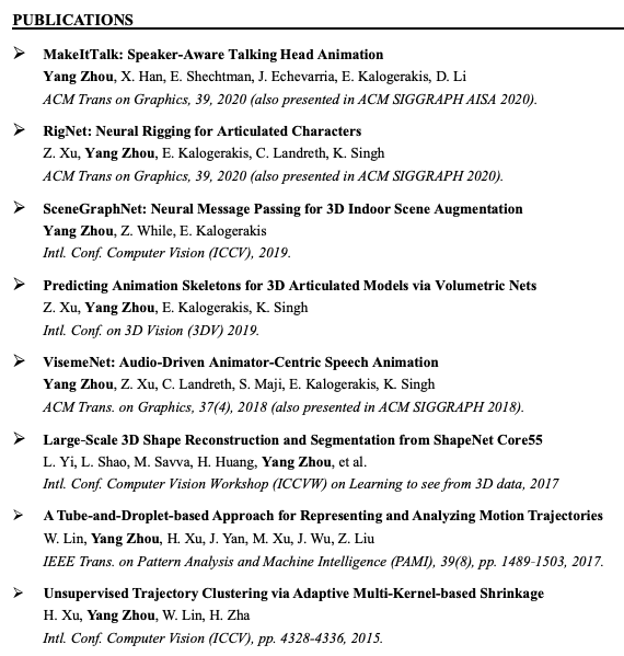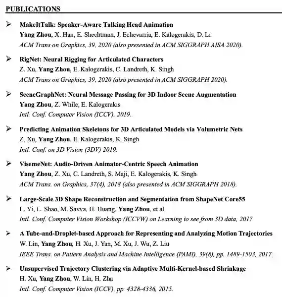 如果也想给你的设计加点AI的基因,Yang Zhou的论文列表绝对是个不错的选择,有很多关于动画生成和多模态深度学习的研究。